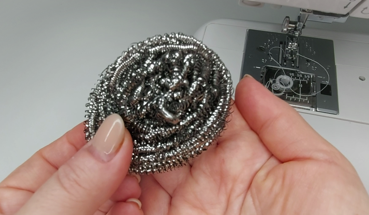 Металлическую мочалку использую не для мытья посуды, а для шитья.