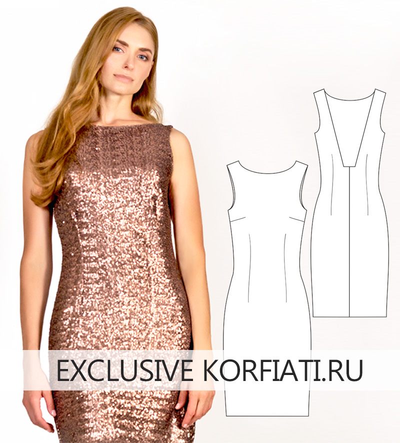 Готовая выкройка платья без рукавов для скачивания от А. Корфиати Готовая выкройка платья без рукавов. Скачайте выкройку праздничного платья из материала с пайетками на 5 размеров бесплатно. Сшить - просто!