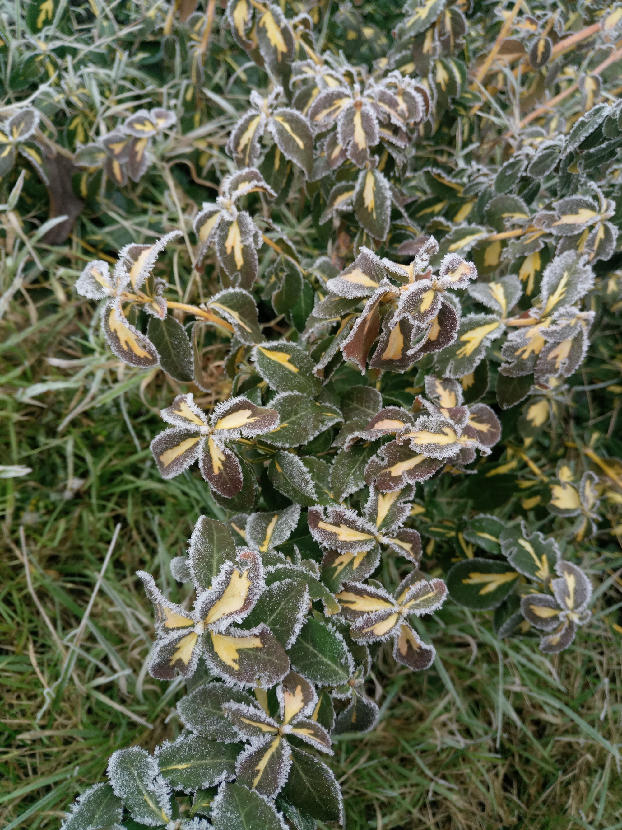 Бересклет Форчуна «Солнечное пятно» (Euonymus fortunei «Sunspot») зимой