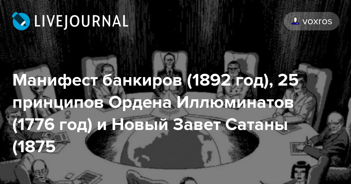 Манифест банкиров (1892 год), 25 принципов Ордена Иллюминатов (1776 год) и Новый Завет Сатаны (1875 Чипизация, биометрический паспорт, мультипаспорт, УЭК, СНИЛС, ИНН, Движение Россия 2045, Проект Детство 2030, трансгуманизм, движение New Age (Нью Эйдж, Новый Век, Новая Эра), Аллатра, различного рода секты, ересь, оккультизм, эзотерика (магия), колдовство, гадания, приворот (отворот), Mondex,…