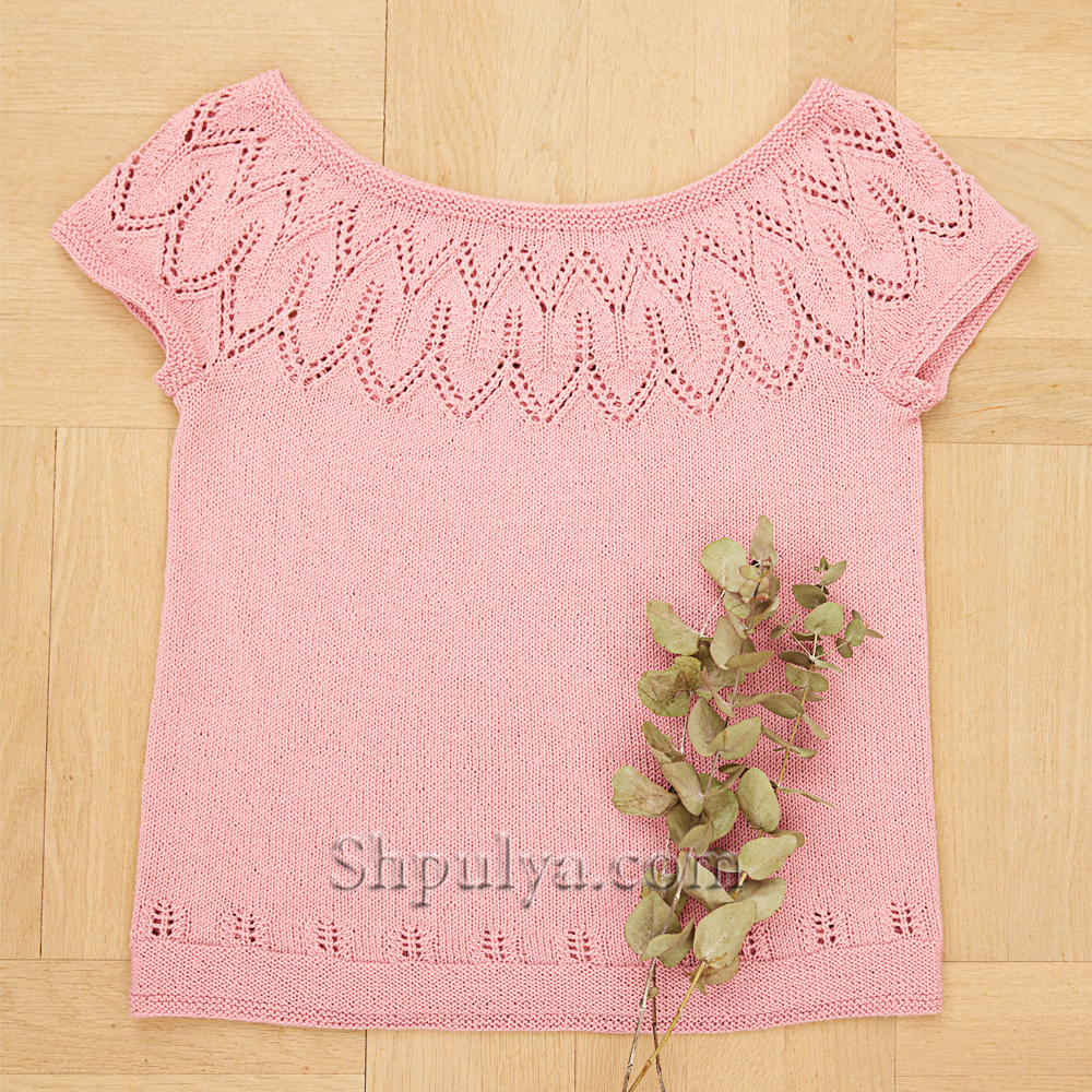 Топ с круглой ажурной кокеткой. Спицами. / Shpulya.com - схемы с описанием для вязания спицами и крючком