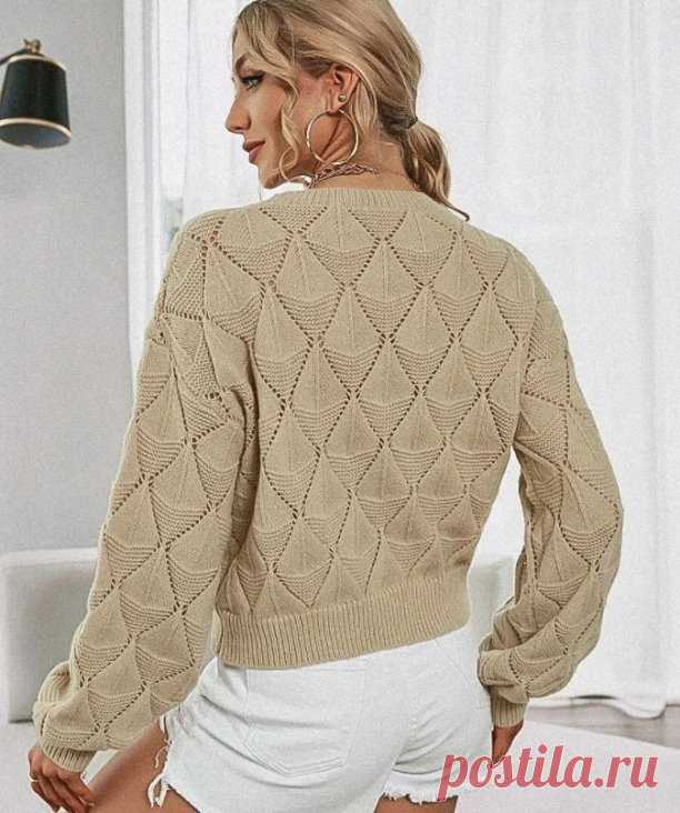 Укороченный джемпер листьями На схеме узора обозначены четные и нечетные ряды как для кругового вязания. Для того, чтобы вязать узор поворотными рядами по этой схеме измените все лицевые петли на изнаночные, а изнаночные на лицевые.