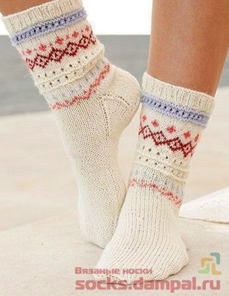 Белоснежные вязаные носки с нежным рисунком (Вязание спицами) Белоснежные вязаные носки с нежным рисунком лучше всего подойдут для отдыха после насыщенного дня. Размеры: Соответствуют размерам обуви 35/37 (38/40, 41/43) Длина стопы – 22 (24, 27) см, Высота па…