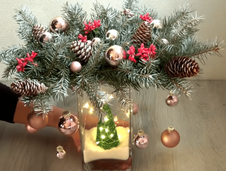 Новогодний декор из того, что под рукой Шикарную новогоднюю композицию легко сделать своими руками из подручного материала. Выглядеть она будет стильно и оригинально, отлично подойдет как для украшения дома, так и для офиса. Затраты при это...