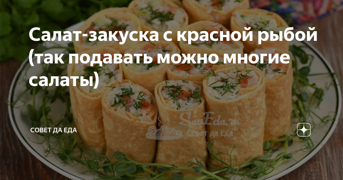 Салат-закуска с красной рыбой (так подавать можно многие салаты) Таким способом можно подавать любой салат, который готовится в смешанном виде (не слоями) и в его составе есть куриные яйца. Это блюдо можно назвать и салатом, и закуской. Получается салат в порционных трубочках (рулетиках). Сегодня его готовлю с красной рыбой, свежими огурцами и рисом. Салат сочный, вкусный и очень красивый. Все продукты прекрасно сочетаются между собой. Порции 12 Время подготовки 30 минут ...