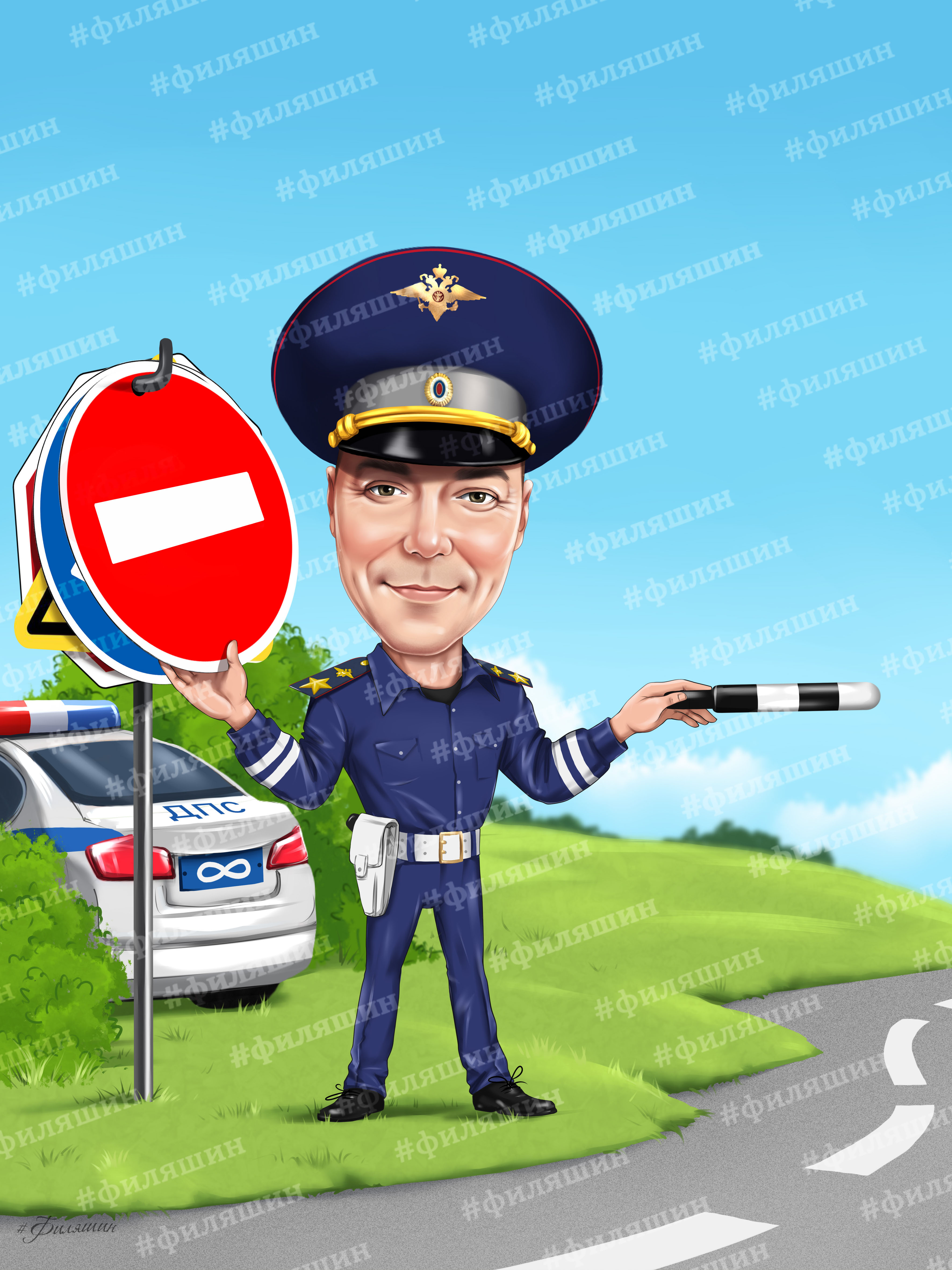 Шарж в подарок мужчине по фото. Шарж гаишника на заказ. Заказать очень просто - напишите в директ или по ссылке с картинки