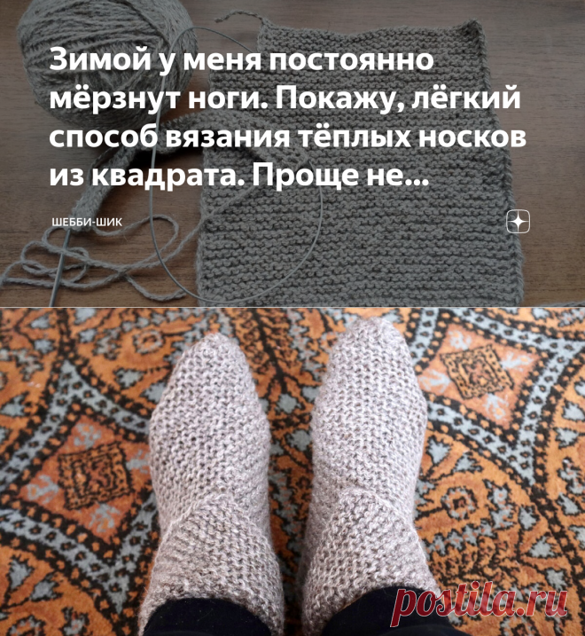 Зимой у меня постоянно мёрзнут ноги. Покажу, лёгкий способ вязания тёплых носков из квадрата. Проще не придумаешь | Шебби-Шик | Яндекс Дзен