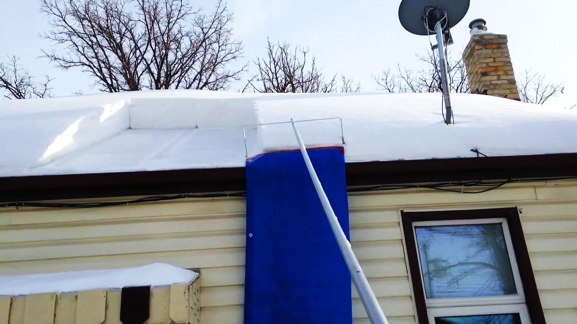 Как сделать инструмент для быстрой уборки снега с крыши, без подъема на кровлю Зимой на крыше скапливается столько снега, что стропила буквально трещат под ним. Чтобы тот не повредил кровлю, его требуется периодически убирать. Подниматься на крышу небезопасно, поэтому лучше сделать несложный инструмент, с которым возможно снимать снег стоя на земле. Материалы: Алюминиевая