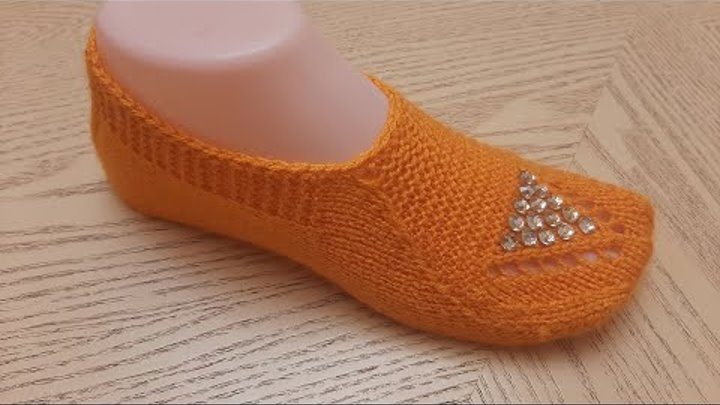 НОВИНКА 2021 : Классные тапочки-следки на двух спицах без швов.