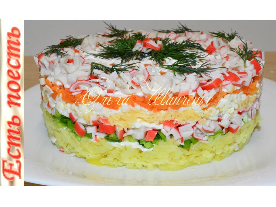 Рецепт быстрого и яркого, по-праздничному нарядного салата с крабовыми палочками. Получается очень нежным, с бархатным вкусом, дайте ему только хорошо пропитаться. Готовится быстро, отлично подойдёт как для праздничного, так и для семейного ужина.