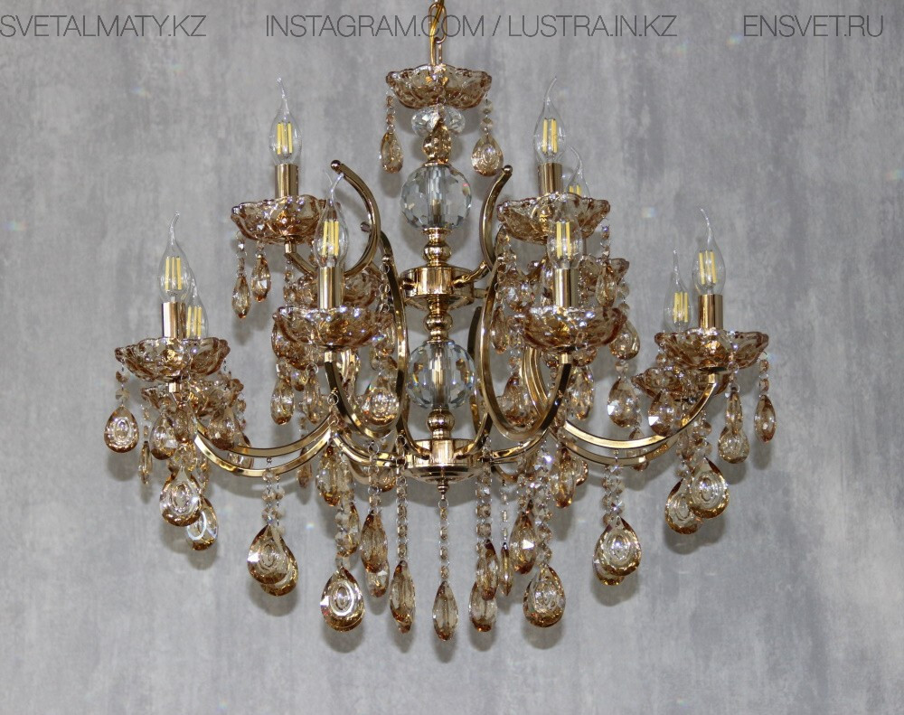 Люстра хрустальная на 12 ламп, цоколь E14, золото