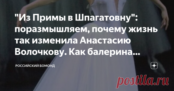 "Из Примы в Шпагатовну": поразмышляем, почему жизнь так изменила Анастасию Волочкову. Как балерина выглядит сейчас Пожалуй, Анастасия Волочкова – самый яркий пример того, как жизнь может сурово обойтись с женщиной. Ее имя было у всех на устах, ее танцем восхищались в России и за ее пределами. Но минуло двадцать лет, и... Как же сильно изменилась эта женщина и образ ее жизни! Давайте поразмыслим, почему же все закончилось так печально?... Биографию Анастасии можно было бы ...