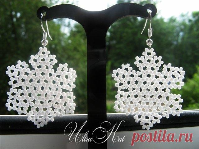 Серёжки-снежинки из бисера Серёжки-снежинки из бисераСерёжки-снежинки из бисера станут отличным украшением на старый новый год.Творите и будьте прекрасны.