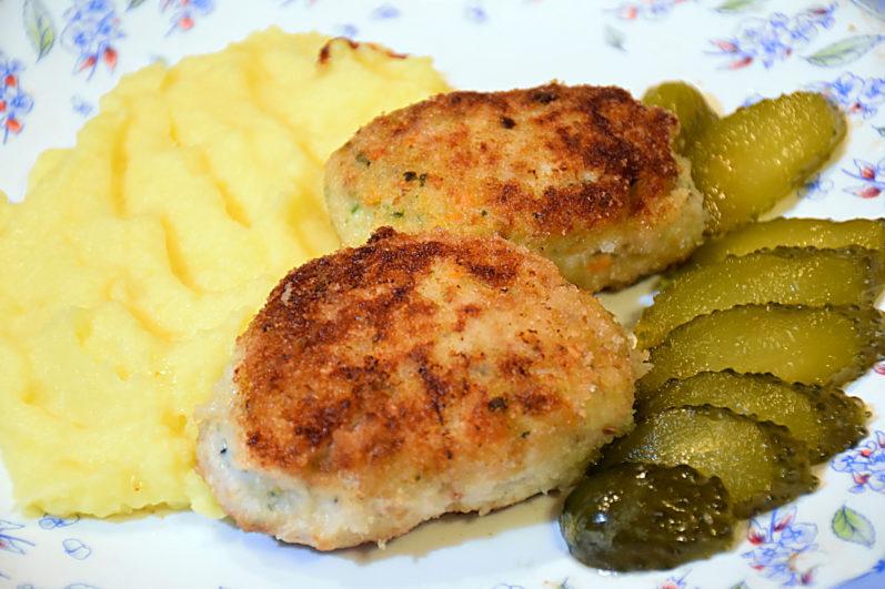 Котлеты школьные с пюре и битыми огурцами Подробнее