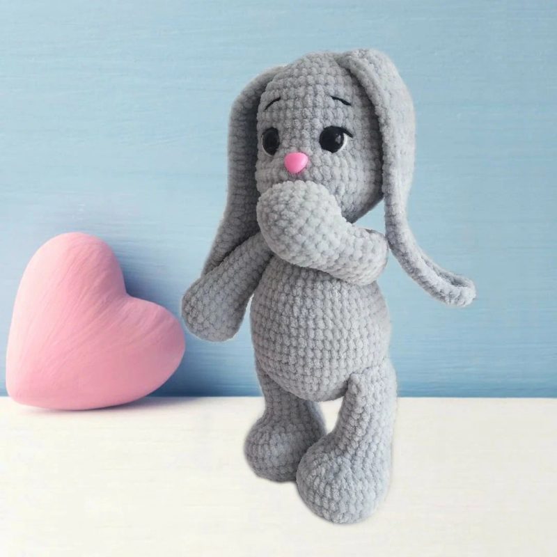 Амигуруми зайчик из плюшевой пряжи крючком с описанием работы