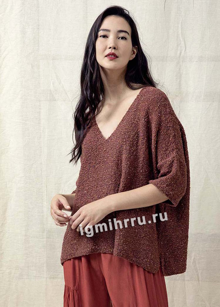 Свободный пуловер простой вязки и прямого покроя. Вязание спицами со схемами и описанием