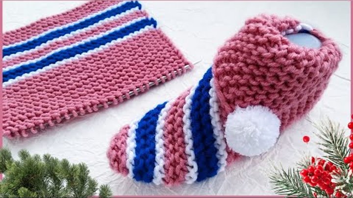 Красивые ТАПОЧКИ - СЛЕДКИ на 2-х спицах. Подробный мастер класс ДЛЯ НАЧИНАЮЩИХ