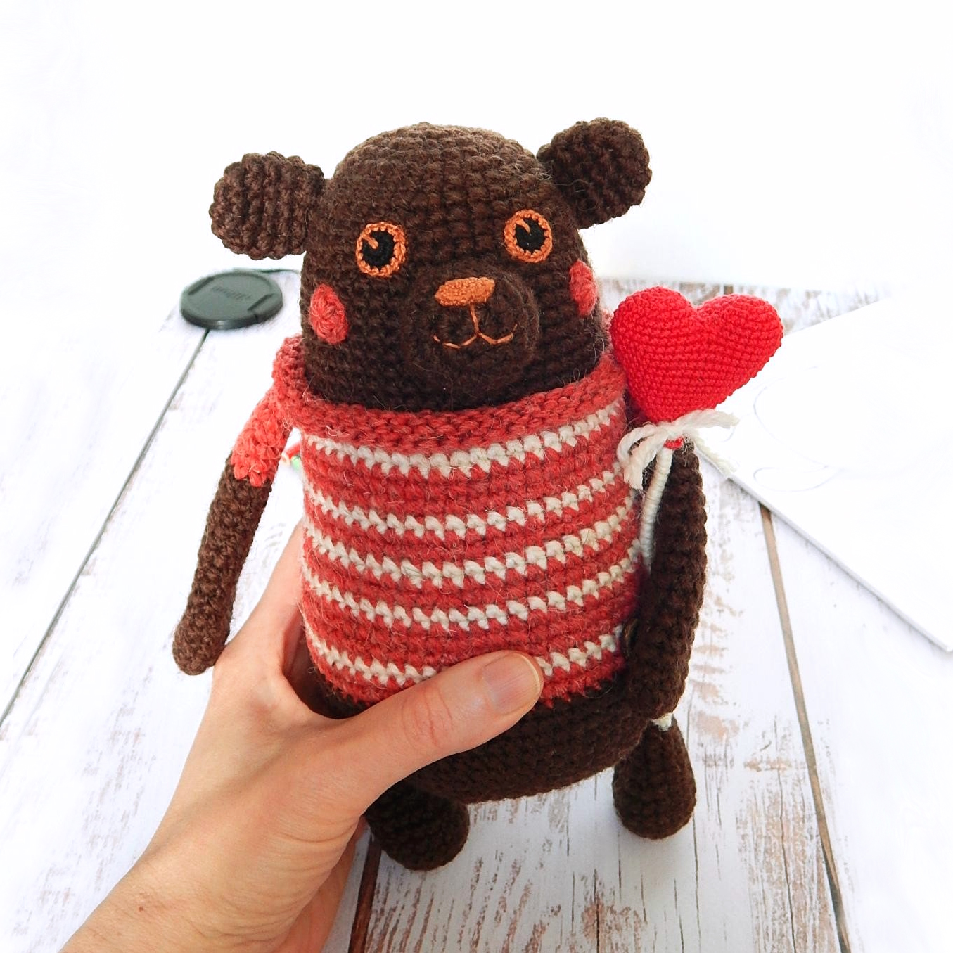 PDF Медведь Арнольд крючком. FREE crochet pattern; Аmigurumi animal patterns. Амигуруми схемы и описания на русском. Вязаные игрушки и поделки своими руками #amimore - мишка из обычной пряжи, медведь, медвежонок.