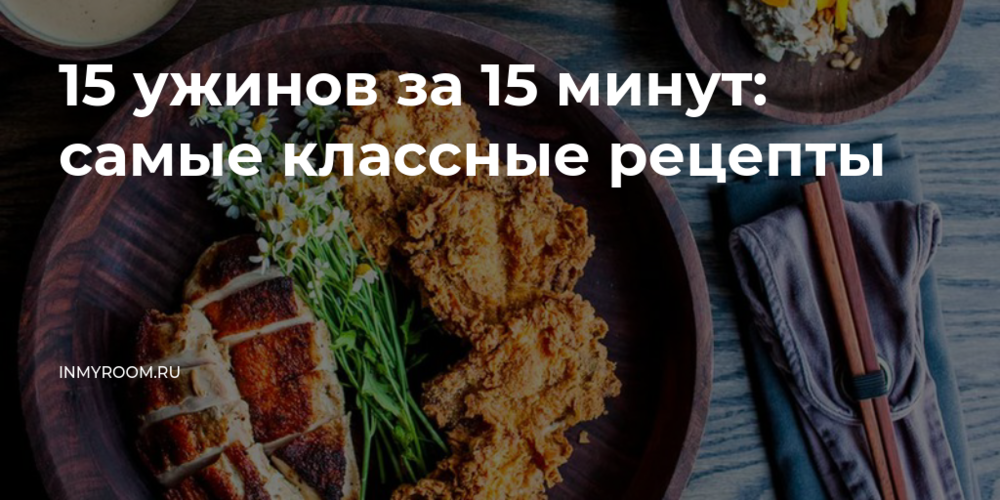 15 ужинов за 15 минут: самые классные рецепты • INMYROOM FOOD Одна из главных ценностей ужина — возможность быстро его приготовить. Если вы цените свое время, берите на заметку рецепты из обзора. На приготовление этих ужинов вы потратите не больше 15 минут. На INMYROOM FOOD Вы найдете вкусные и простые рецепты блюд любой национальной кухни мира, а также массу кулинарных хитростей!