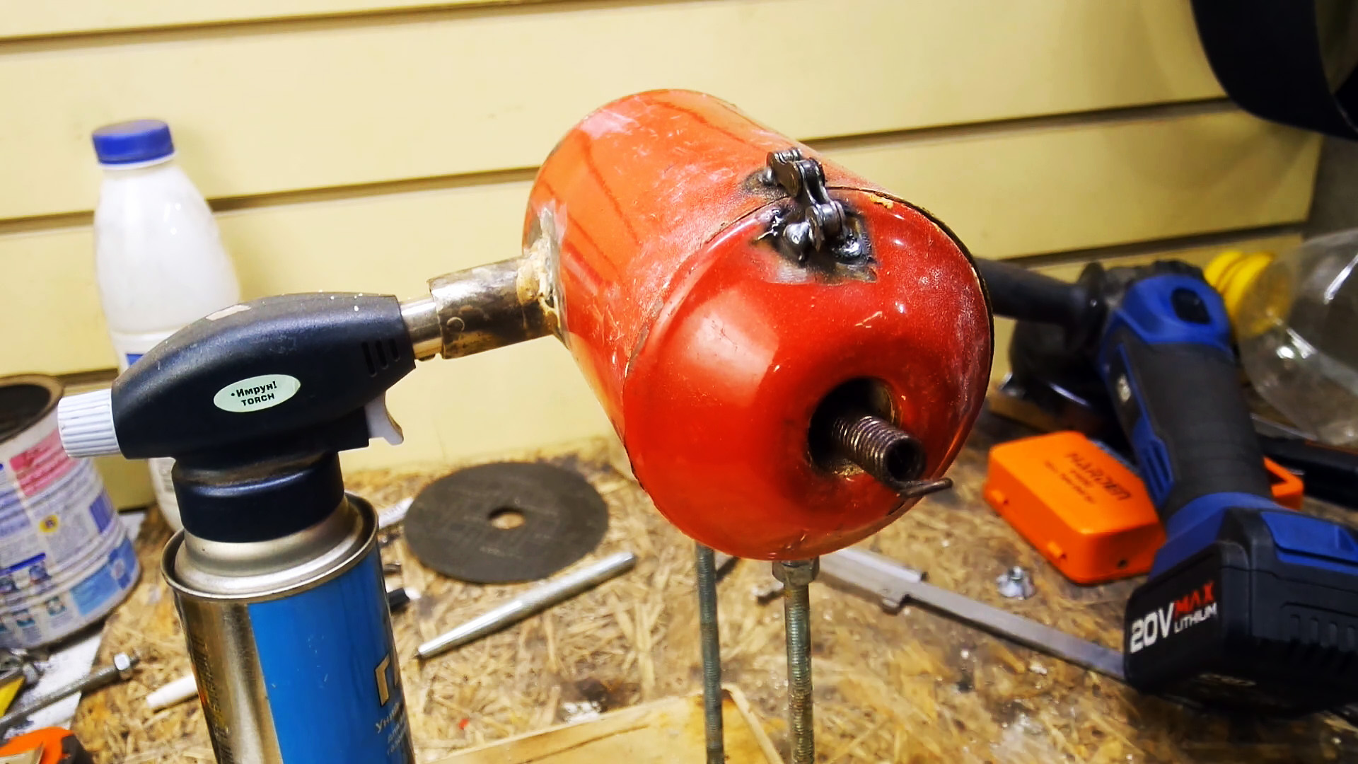 Как из автомобильного огнетушителя сделать горн на базе ручной газовой горелки Для закалки и отпуска небольших металлических заготовок можно использовать мини газовый горн, сделанный и огнетушителя. Собрать его совсем не сложно, при этом он занимает мало полезного места в мастерской. Для сборки горна нужен минимум материалов, которые легко достать. Что потребуется: