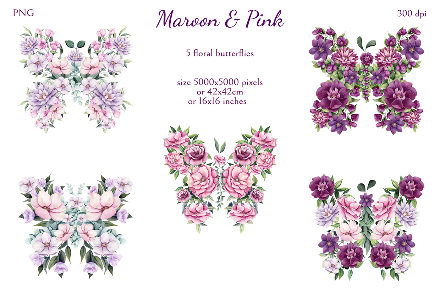 Maroon & Pink - Floral Watercolor Collection on Behance