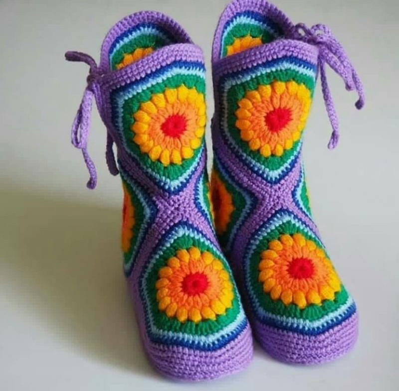 ღДомашние тапочки-сапожки из шестиугольников крючком