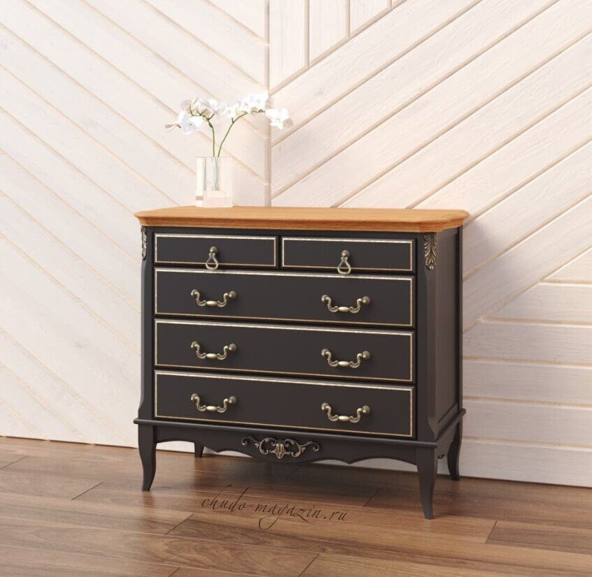 Комод из массива бука с 5 выдвижными ящиками – черный/ясень купить по цене 73 130 руб. в Москве — интернет магазин chudo-magazin.ru