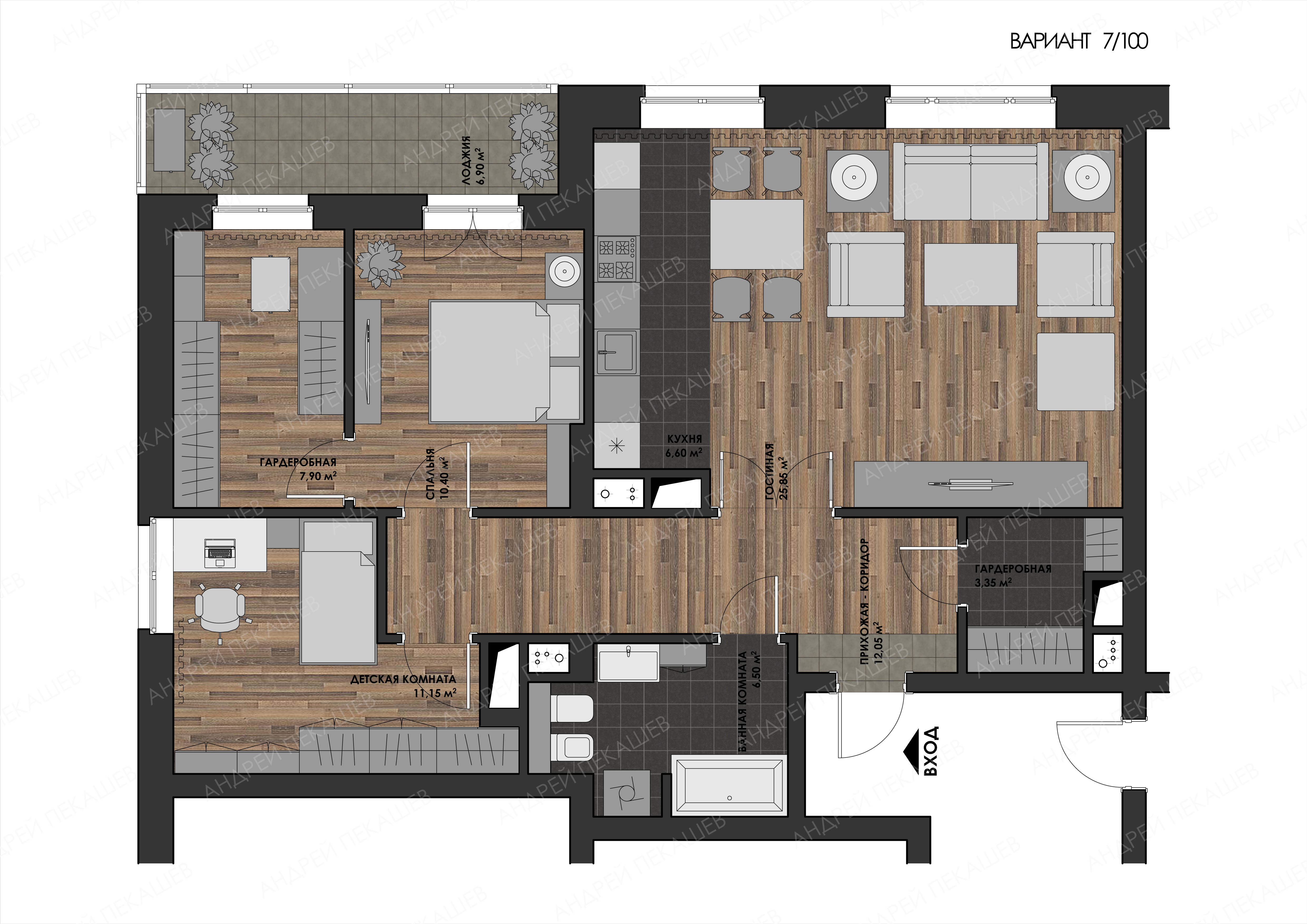 8. Планировка 7. Пекашев А.Е. 100 вариантов. #проект #дизайн #интерьер #квартира #планировка #перепланировка #пекашев
