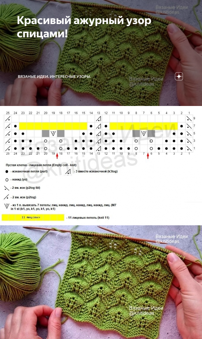 Красивый ажурный узор спицами! | Вязаные идеи. Интересные узоры. | Яндекс Дзен