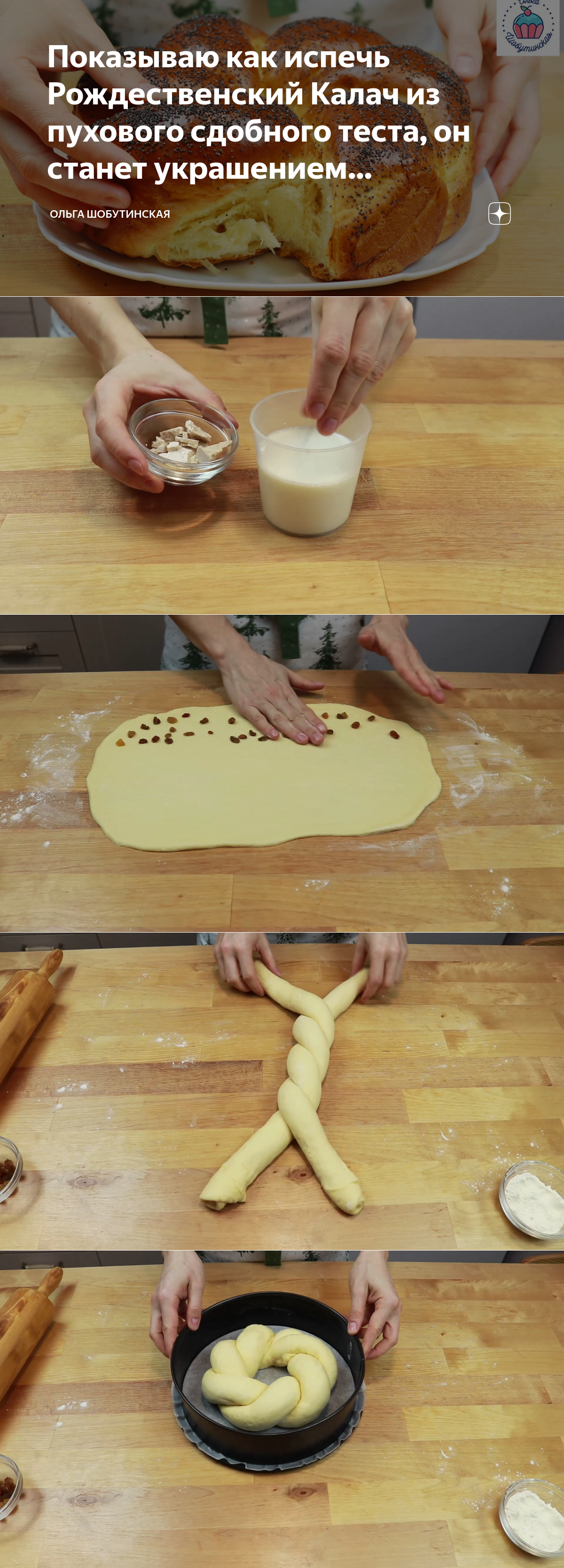 Показываю как испечь Рождественский Калач из пухового сдобного теста, он станет украшением праздничного стола! | Ольга Шобутинская | Яндекс Дзен