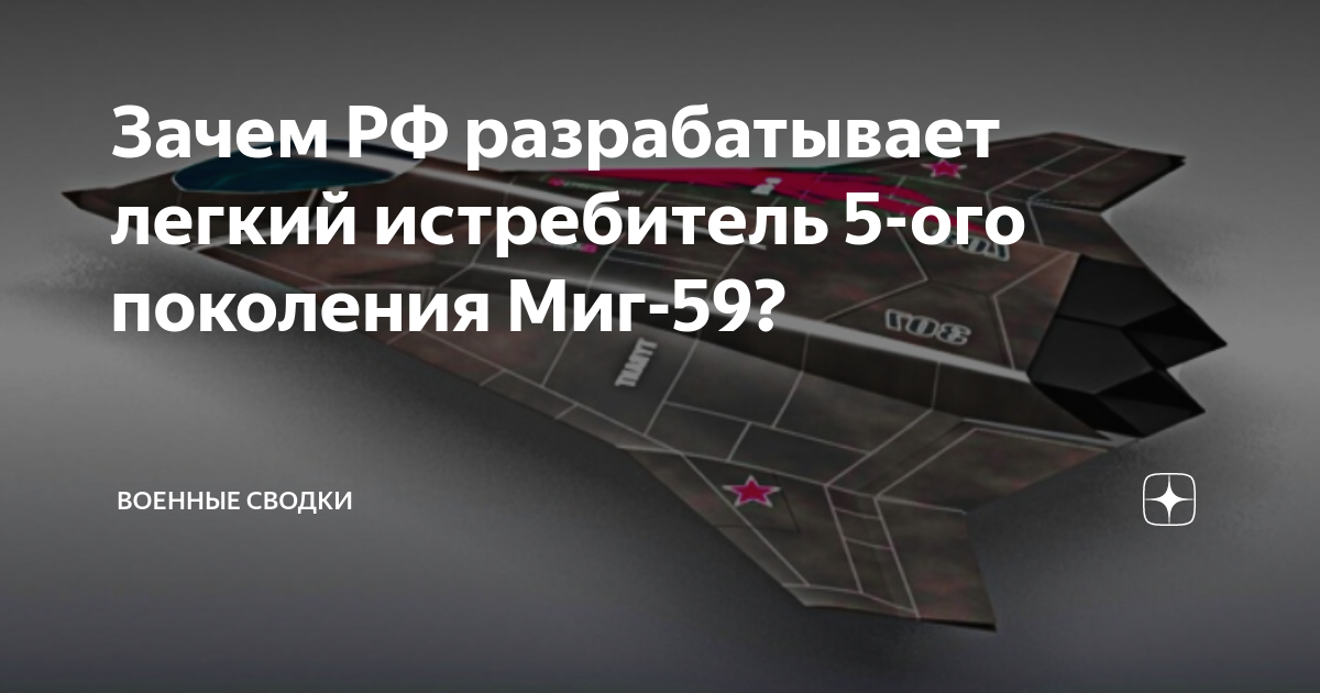 Зачем РФ разрабатывает легкий истребитель 5-ого поколения Миг-59? Едва было объявлено о начале серийного выпуска истребителя МиГ-35, как военпром уже анонсировал появление лёгкого истребителя 5-го поколения МиГ-59. Слухи об этой неведомой машине бродили ещё с 15-го года, потом в 17-м Рогозин проговорился, что работы над МиГ-59 вот-вот начнутся. А на выставке «Армия-2019» представитель компании «Микоян» заявил, что конструктора фирмы напряжённо трудятся над созданием эскизн...