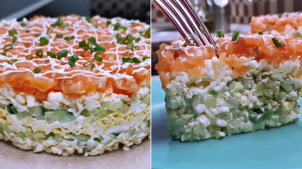 Праздничный салат с красной рыбой: нежное сочетание семги с плавленым сыром | Розовый баклажан | Пульс Mail.ru Если в праздничном слоеном салате с красной рыбой заменить твердый сыр на плавленый, салат получится еще нежнее. Необычное сочетание семги с...