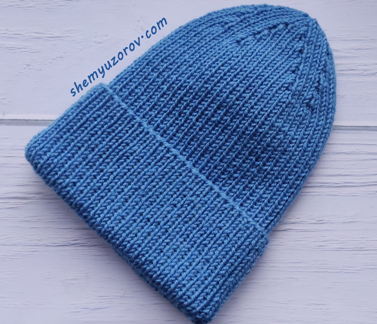 Вязаная шапка резинкой с отворотом спицами. Очень подробное описание по рядам!