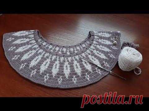 Джемпер жаккард крючком. Часть 5. Кокетка 11-13 ряды.