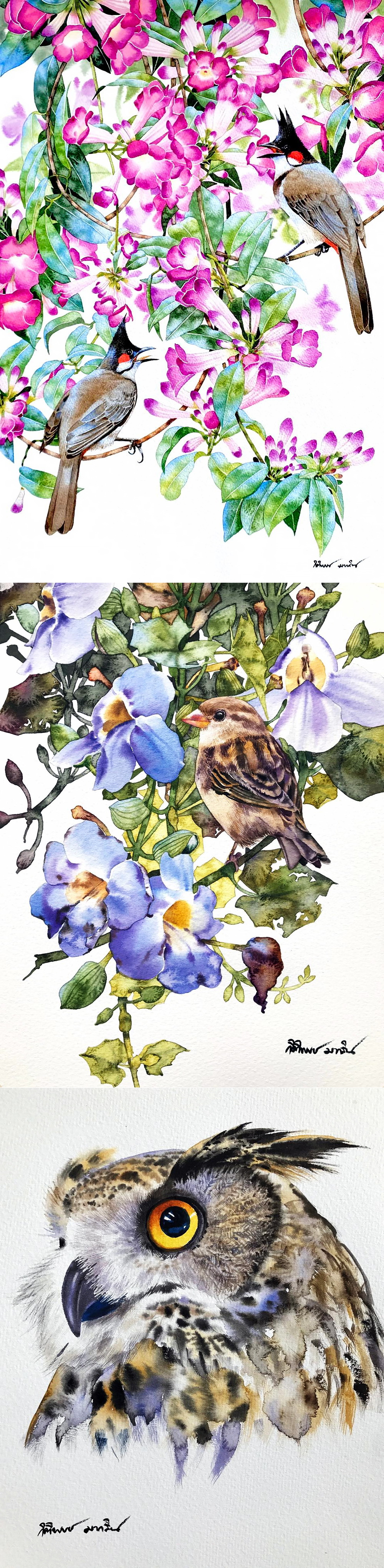 Райские птицы, как райский цветок... Художник - акварелист Kitipong Maksin (Bangkok-Thailand ).
