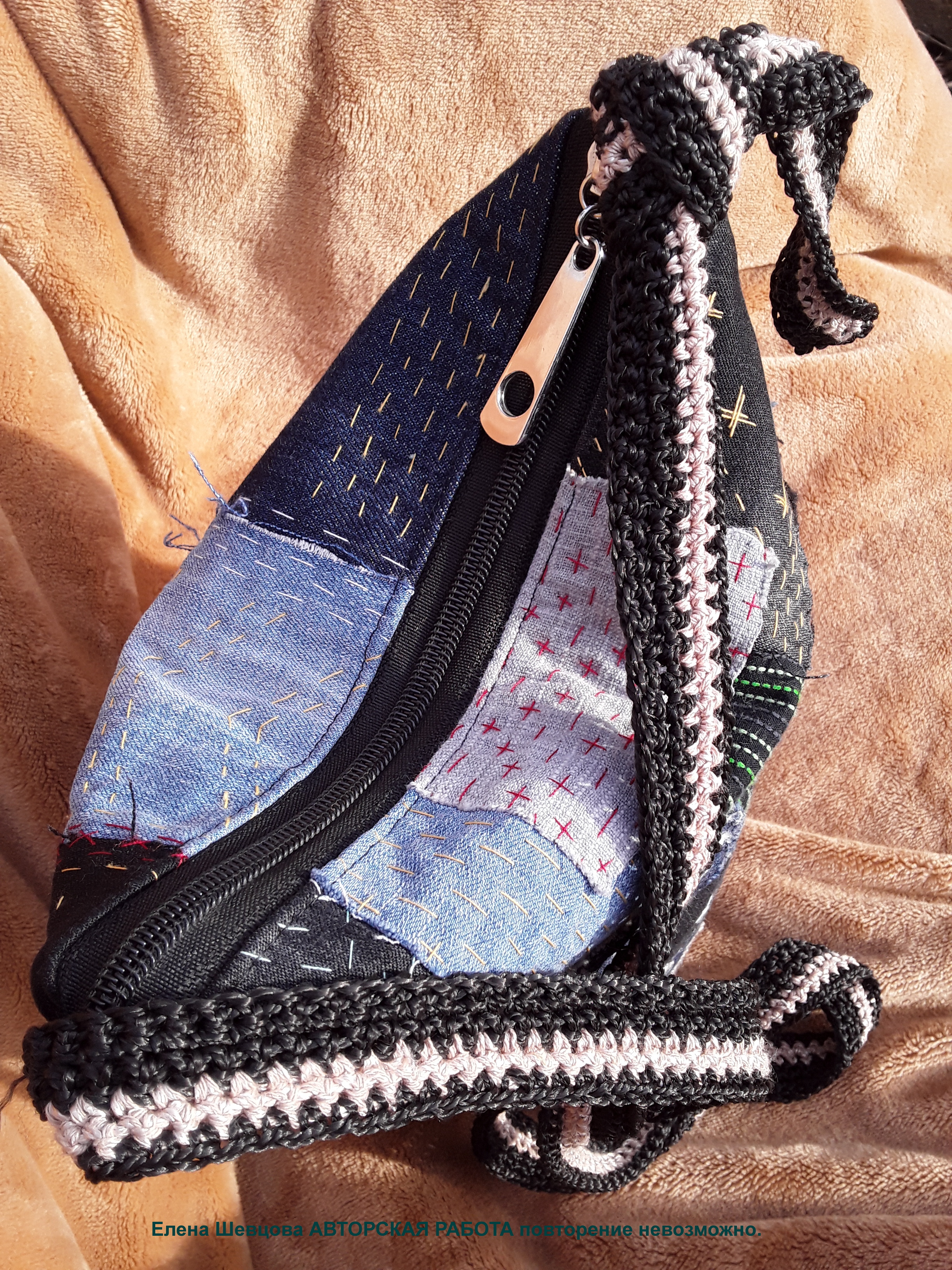 Ремешок у этой сумочки связан крючком, что придает ей изысканность и определённый шарм.