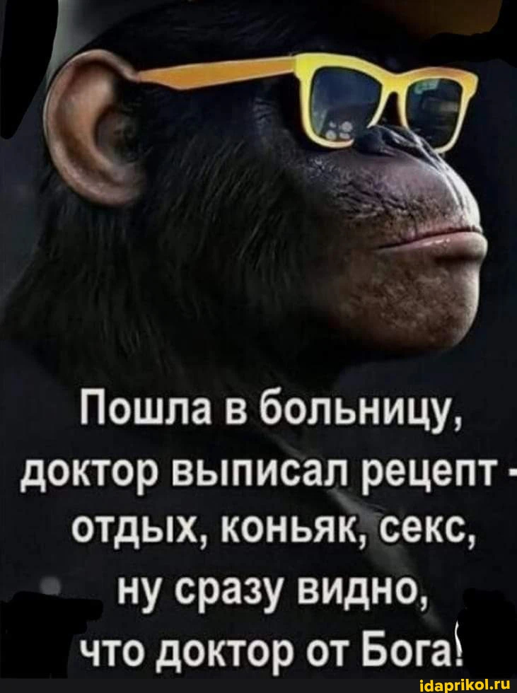 Пошла в больницу, доктор выписал рецепт - отдых, коньяк, 'секс, ну сразу видно, что поктор от Бога\ - ) / АйДаПрикол .)