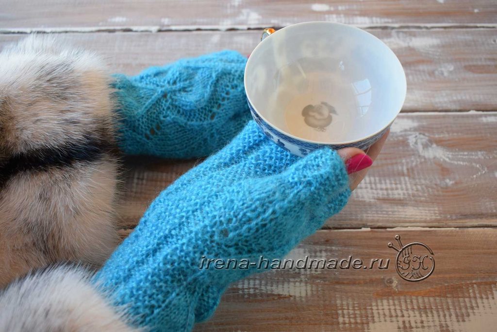 Ажурные митенки с узором «Листья» (вязание, схемы и фото) - Irena Handmade
