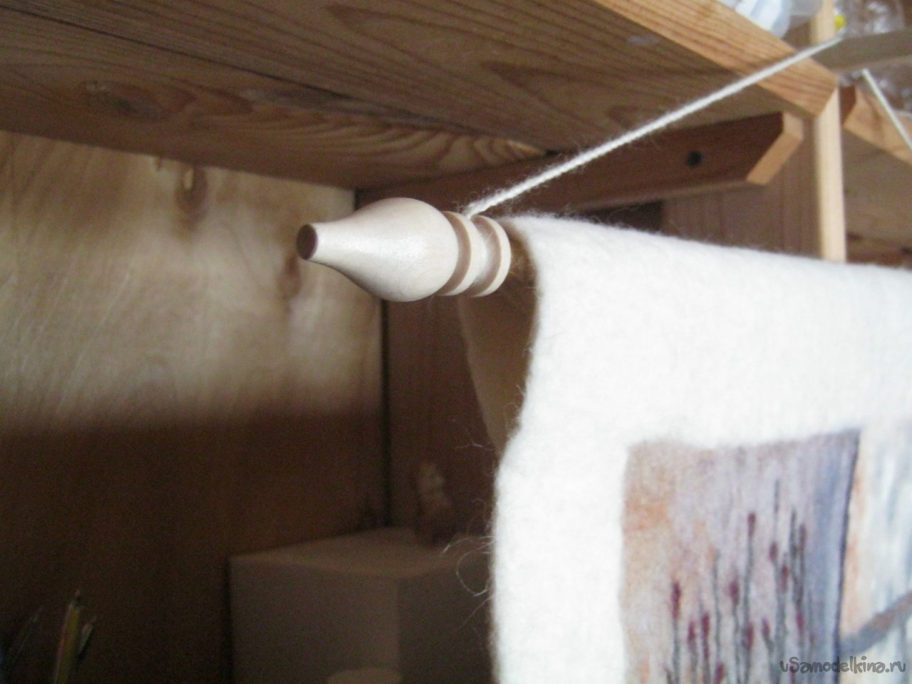 Декоративно-прикладное деревоточение. Подвес для настенной работы Простая полезная токарная вещица – основание-подвес для декоративной настенной работы, в данном случае – картины из цветной шерсти (комбинированное валяние), хотя может быть применена и с любой другой подходящей текстильной работой, рисунком, росписью и т. д. Красивая деревяшечка добавляет