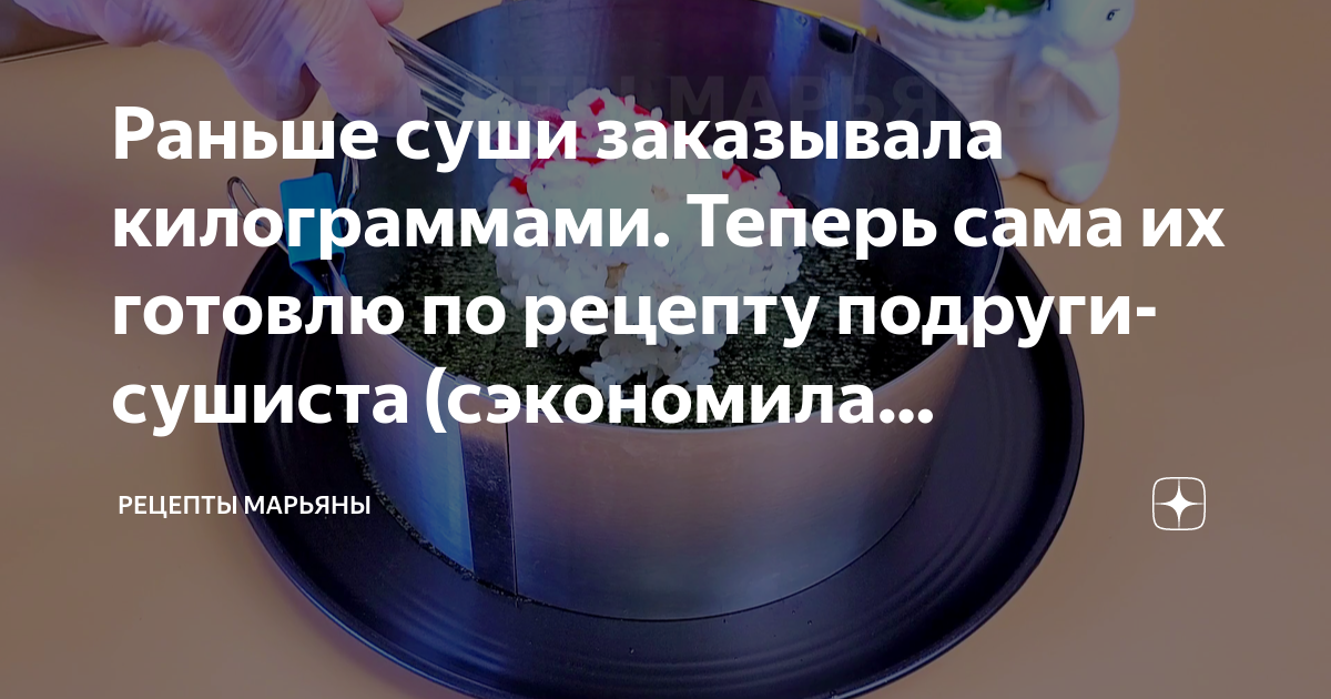 Раньше суши заказывала килограммами. Теперь сама их готовлю по рецепту подруги-сушиста (сэкономила приличную сумму). Я просто обожаю суши и раньше постоянно заказывала их в ресторанах. Моя подруга работает сушистом в ресторане японской кухни и я давно просила ее научить меня делать суши. Наконец-то, она показала, как они готовят торты. Спешу поделиться)) Для рецепта нам понадобится: Заправка для риса: Приступим к приготовлению: Сначала приготовим заправку для риса: соедини...