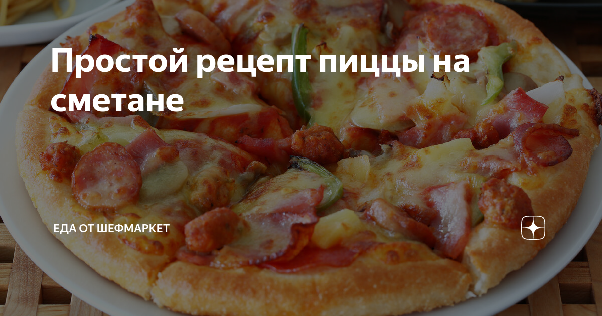 Простой рецепт пиццы на сметане Опытные хозяйки, которые не любят работать с дрожжевым тестом, предпочитают рецепт пиццы на сметане. Выпечка получается очень вкусной и нежной, а основу не приходится долго настаивать. Тесто замешивается очень быстро. Основным его компонентом выступает густая сметана. Конечно, получится не классическая основа для пиццы, но тоже весьма достойная. Самое главное, что тесто не требуется настаивать, оно готово к использованию сразу же после замес...