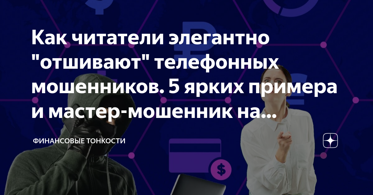 Как читатели элегантно "отшивают" телефонных мошенников. 5 ярких примера и мастер-мошенник на 1млн.руб. Друзья, сегодня хочу вернуться к теме телефонных мошенников. 3 недели назад я рассказал о 3-х своих приемах, которые помогают отвязаться от телефонных мошенников. Статья получила большой отклик у читателей и многие стали делиться своими приемами и способами избавления от мошенников. Я решил сделать отдельную публикацию и добавить один нетривиальный случай мошенничества в...