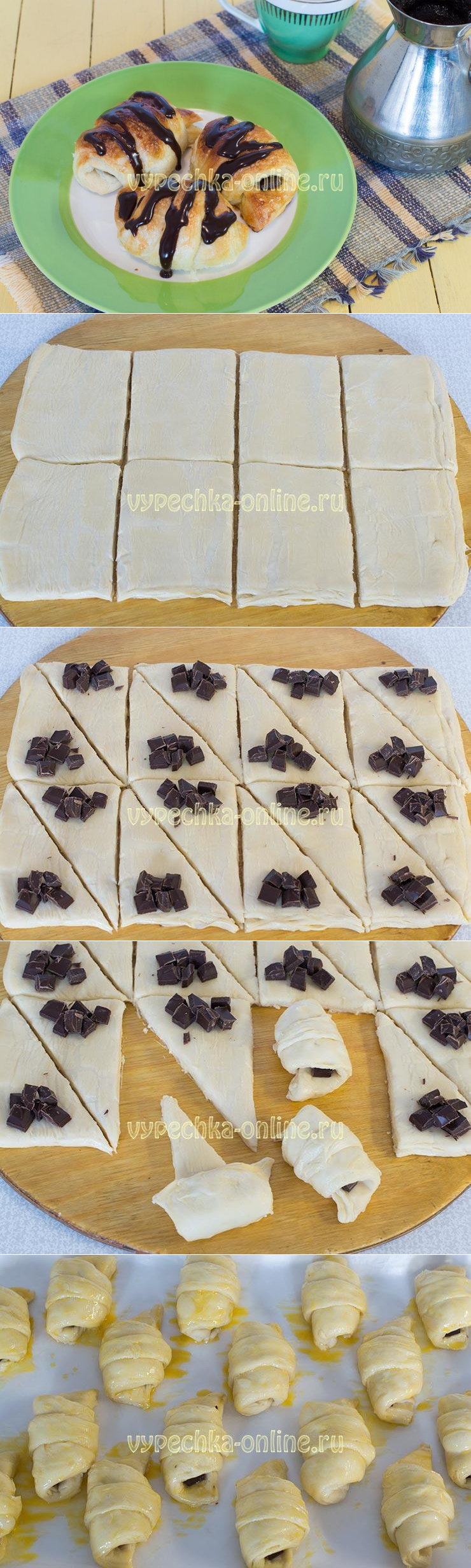 ✔️Круассаны из слоёного теста с шоколадом — рецепты с фото пошагово в духовке