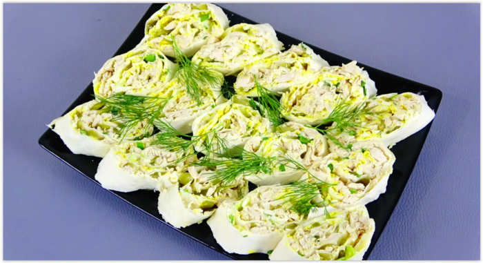 Диетический рулет из лаваша с курицей "Зимний" без майонеза