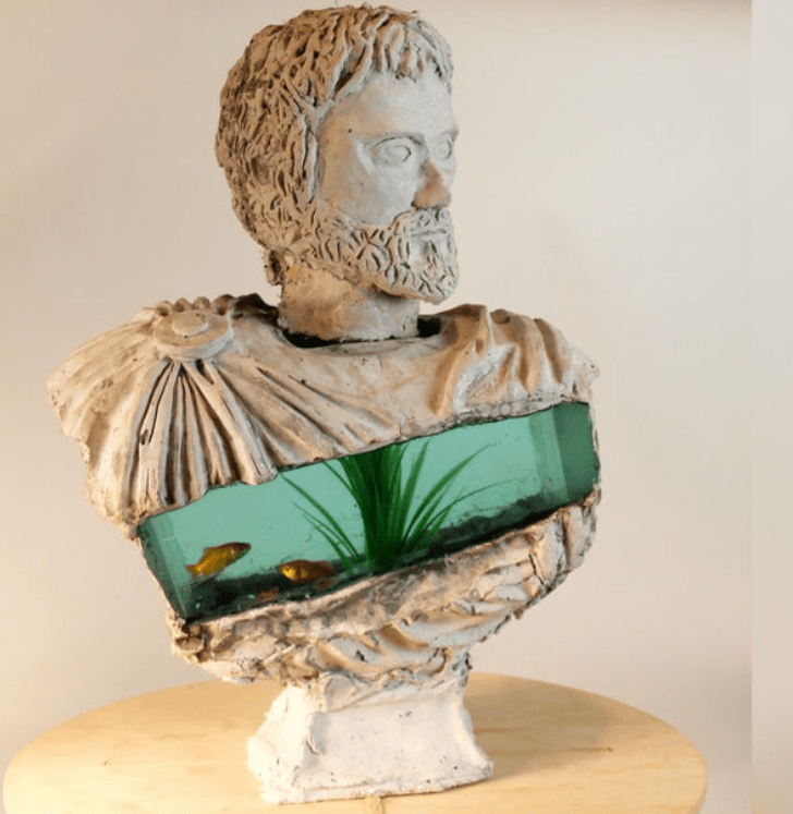 Торс с аквариумом. Настоящий аквариум в гипс встроить может быть сложно; эпоксидная смола и пластмассовые фигурки вам в помощь.