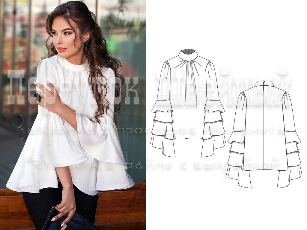 Выкройка блузки с ассиметричными воланами на рукавах - Переулок швейный