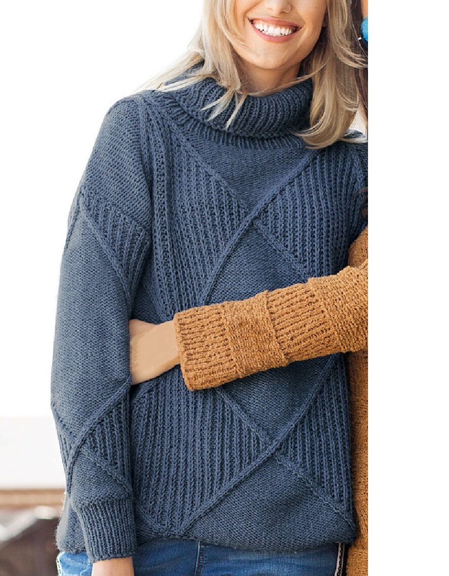 Уютный свитер, связанный узором с ромбами
