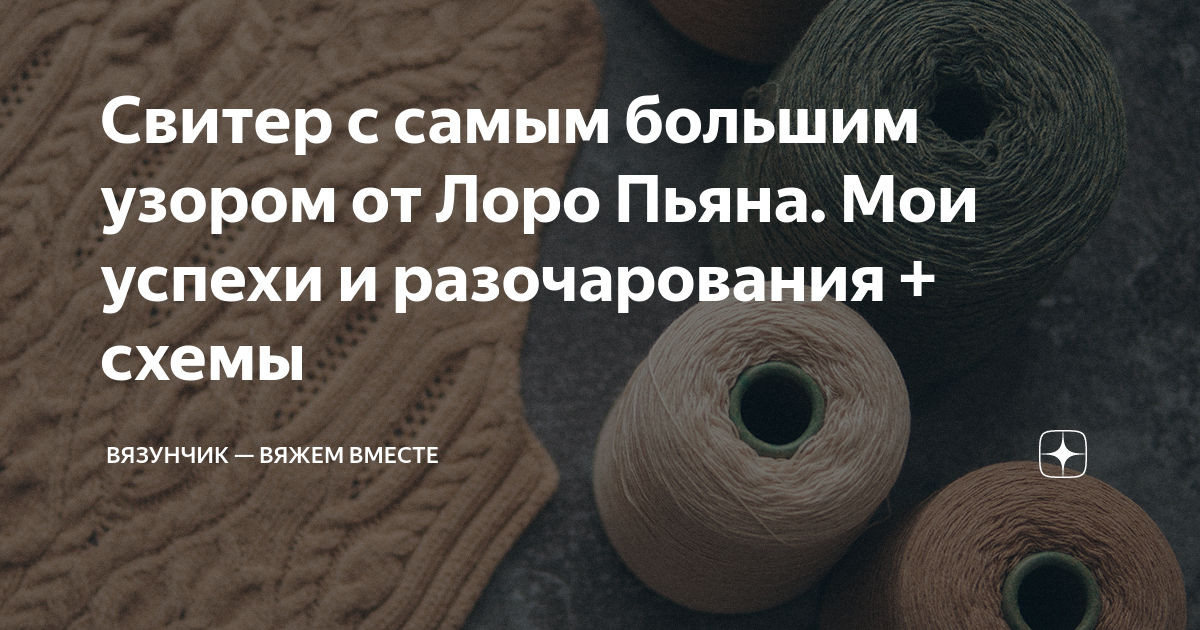 Свитер с самым большим узором от Лоро Пьяна. Мои успехи и разочарования + схемы Наконец-то готова поделиться с вами тонкостями вязального процесса. Я уже связала переднюю часть, постирала её, высушила и готова показать вам результат. А ещё за время работ узнала очень много интересных деталей. Сегодня я вам все расскажу. Схемы новых частей будут в конце. Узор и сложности его вязания И вот моё первое разочарование. Когда я вязала образцы, мне показалось, что узор, хоть и бол...