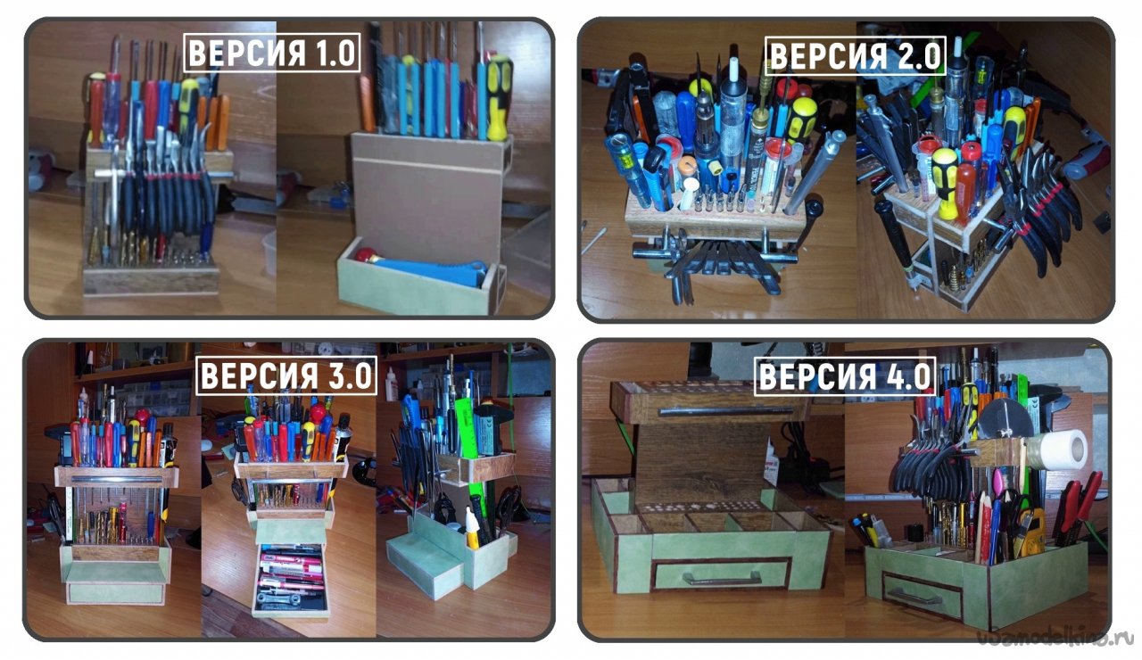 Органайзер своими руками. Система хранения инструмента. Сделано без единого самореза (шурупа). 4 в 1 Привет всем самодельщикам и простым зрителям сайта "В гостях у Самоделкина!" Надоело что инструменты постоянно разбросаны по всему столу? Хочется что бы инструмент всегда был под рукой? А денег на систему хранения нету. Покажу как я делал простой и компактный органайзер для инструмента.