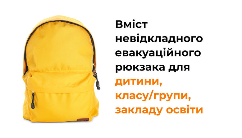 Вміст невідкладного евакуаційного рюкзака для закладу освіти, класу/групи та дитини: рекомендації освітнього омбудсмена